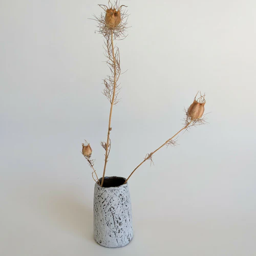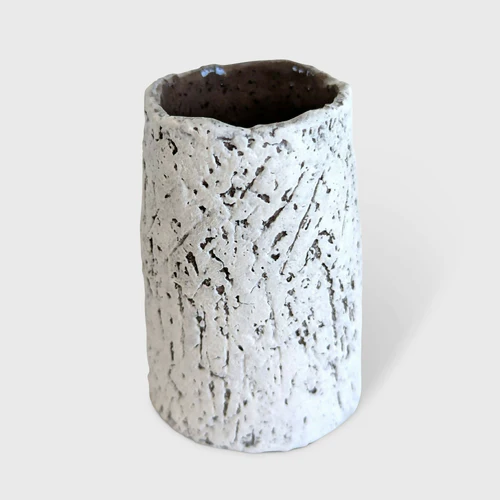 Petit vase en grès, engobe de porcelaine. Pièce texturée.